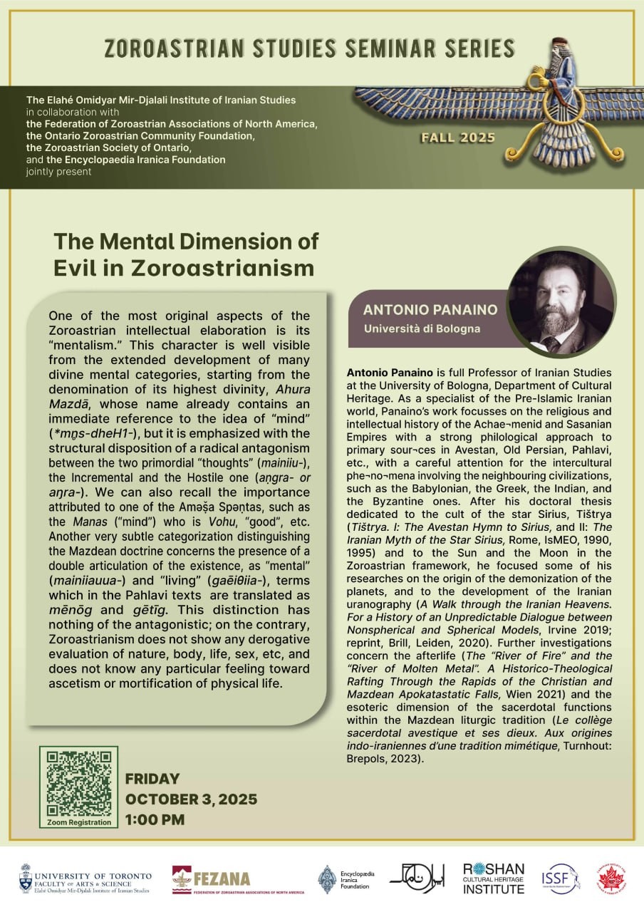 پروفسور آنتونیو پانااینو استاد تمام دانشگاه بولونیا که از پژوهشگران نامدار و بزرگ حوزه مطالعات زرتشتی و ادبیات اوستایی-پهلوی است امروز (روز 3 اکتبر 2025) در ساعت 1 بعد از...